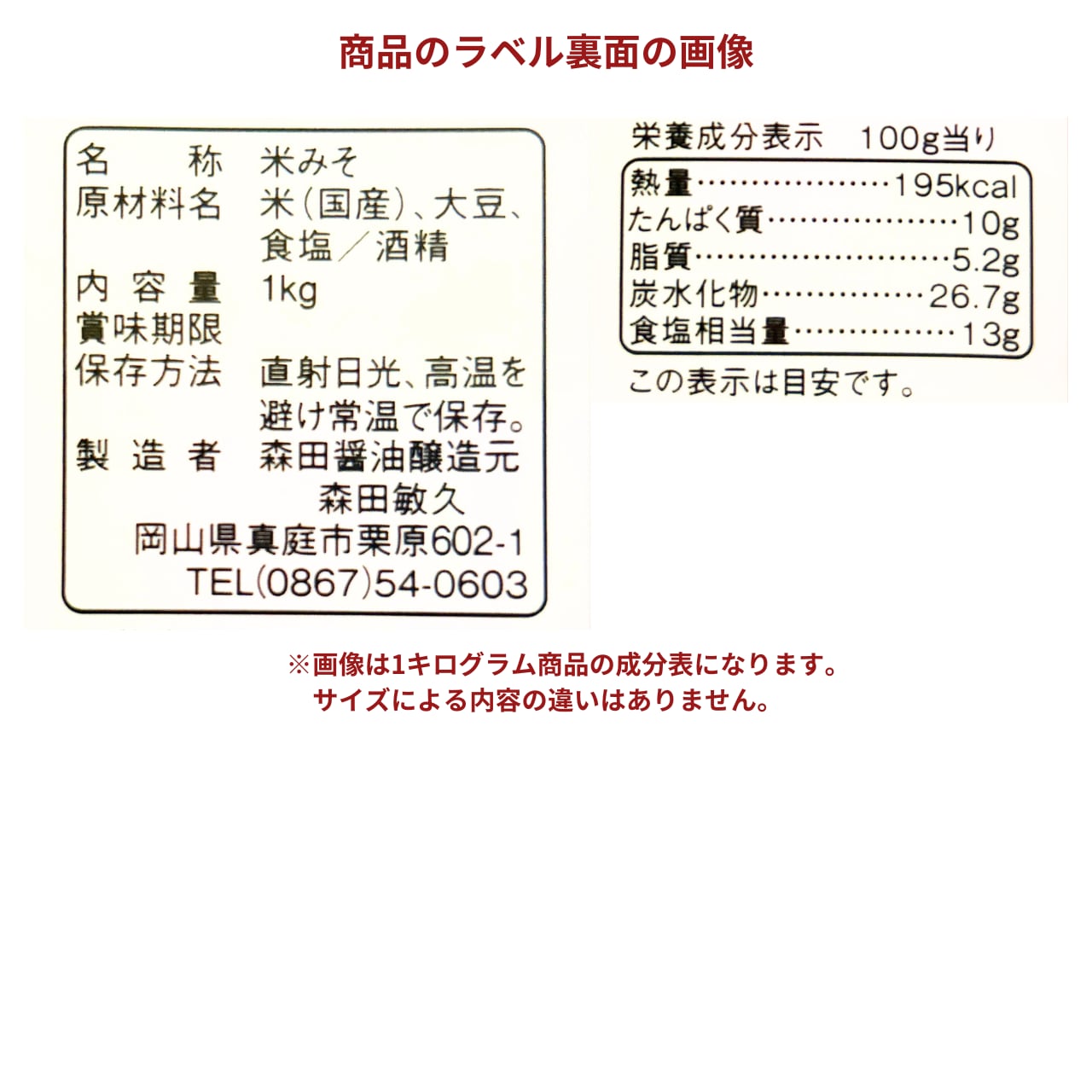・岡山県産の大豆・麹・塩のみを使用した米味噌