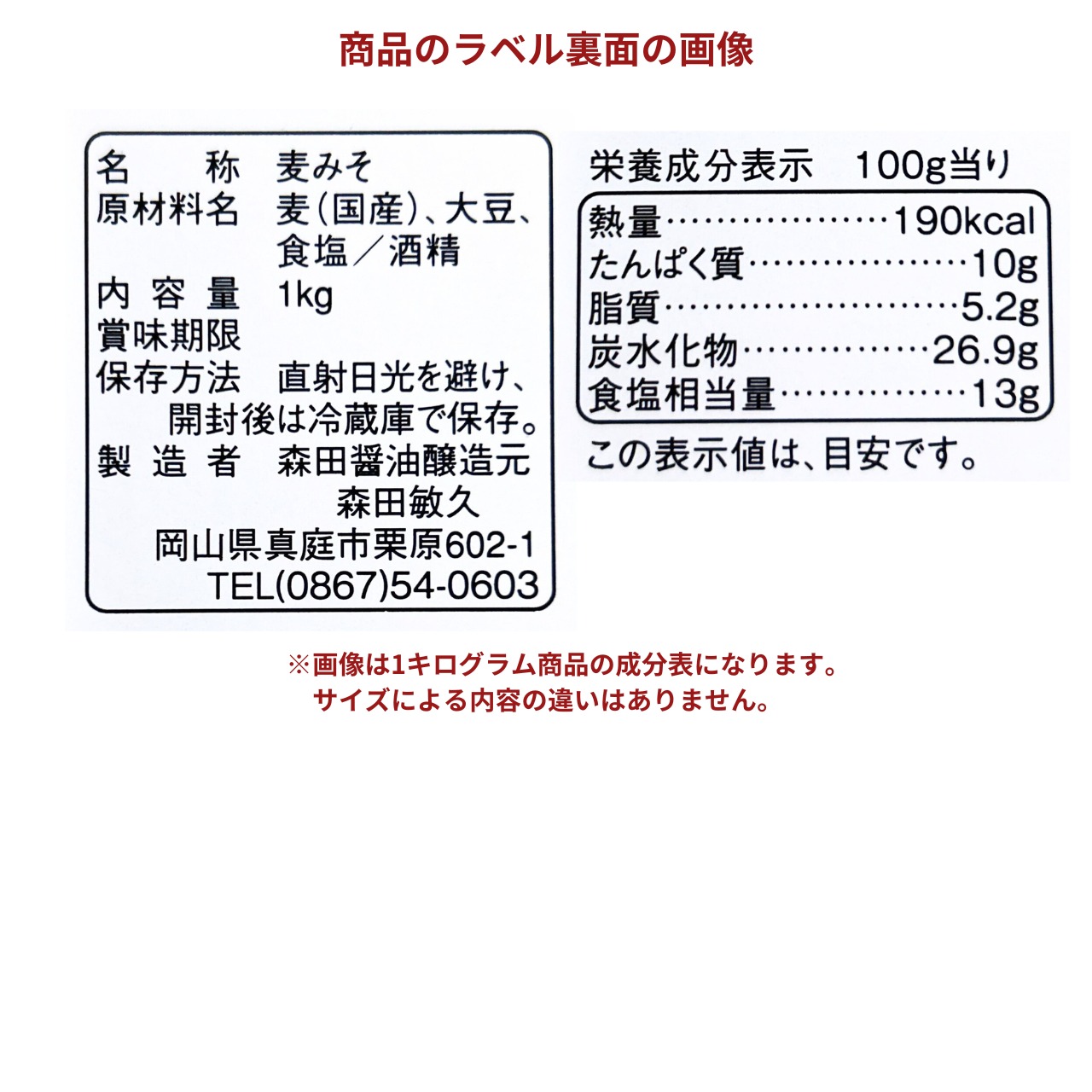 ・岡山県産の大豆・麦麹・塩のみを使用した麦味噌